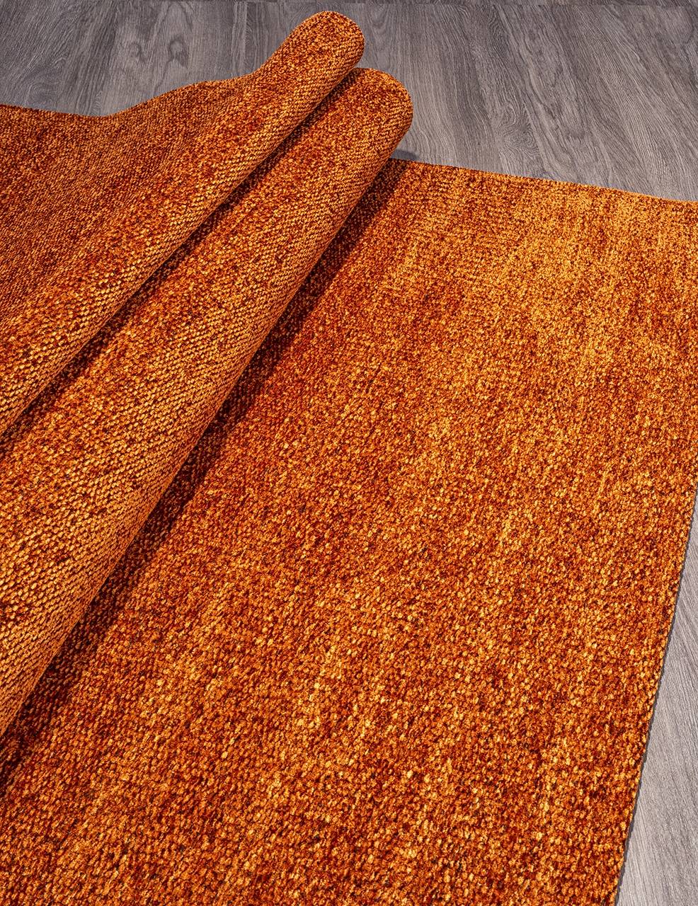 Стильный и яркий ковер-циновка в оранжевом и терракотовом оттенках. Расцветка формирует интересный рисунок благодаря которому такое ковровое изделие станет хорошим дополнением к любому современному интерьеру.