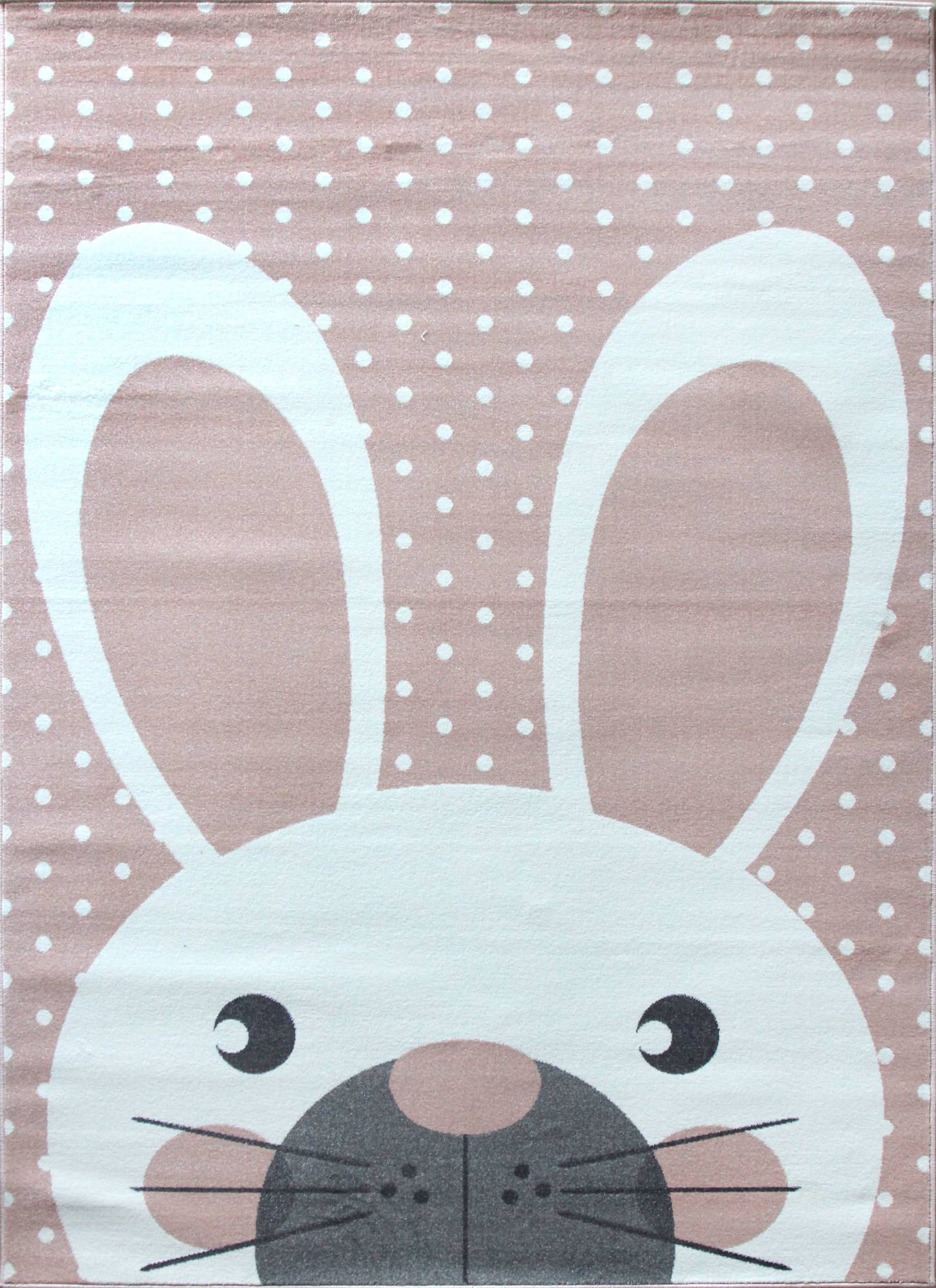 Нежная кремово-розовая расцветка и оригинальный рисунок в виде зайца делают этот ковер стильным украшением для интерьера вашего дома.