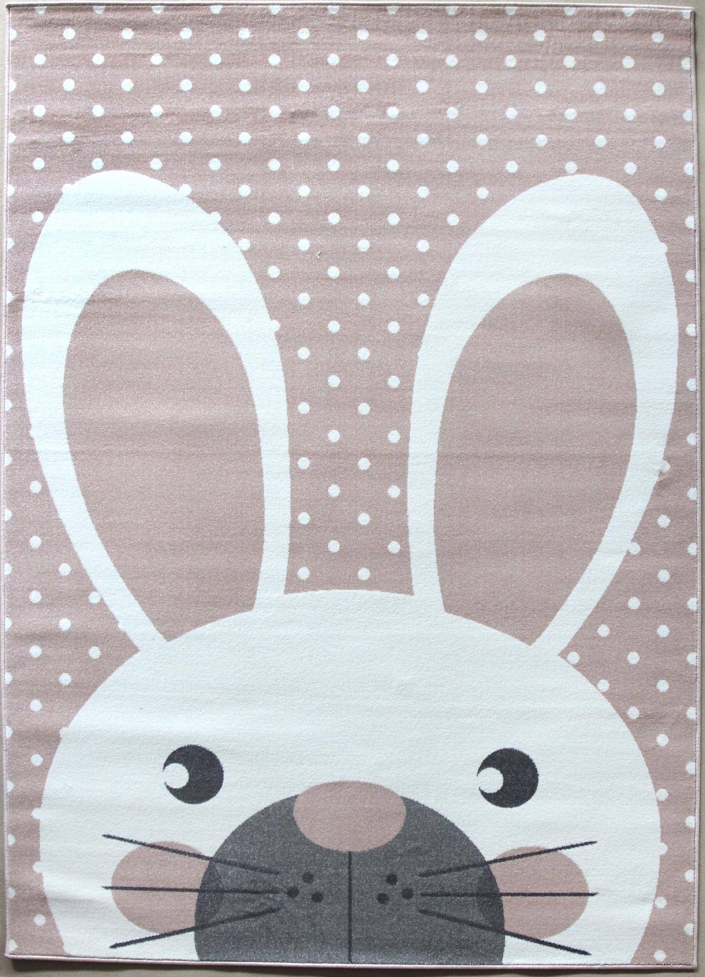 Нежная кремово-розовая расцветка и оригинальный рисунок в виде зайца делают этот ковер стильным укра...