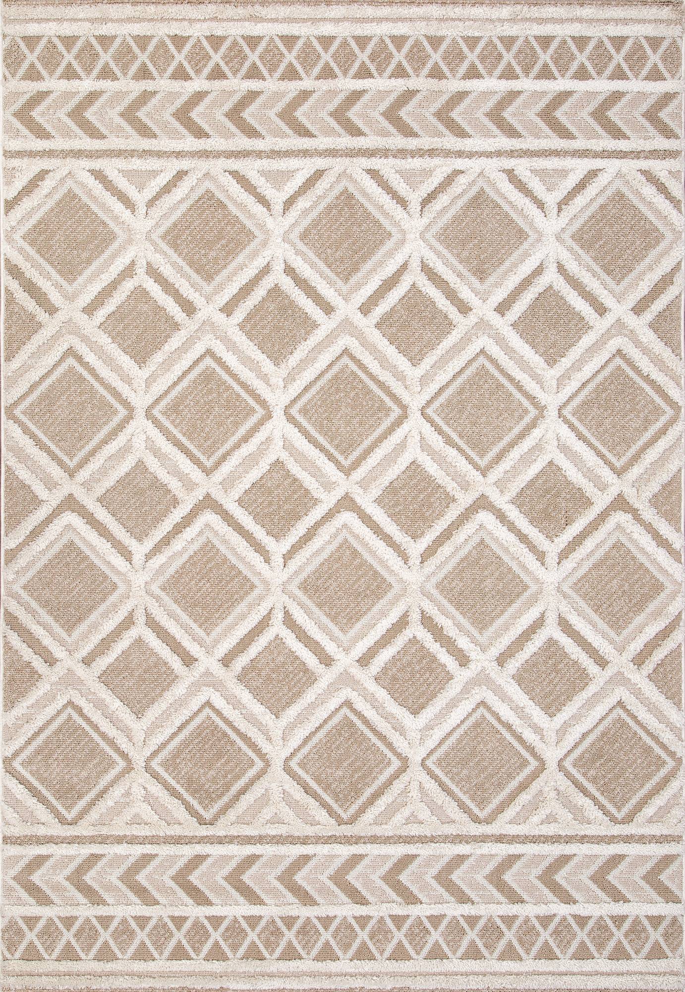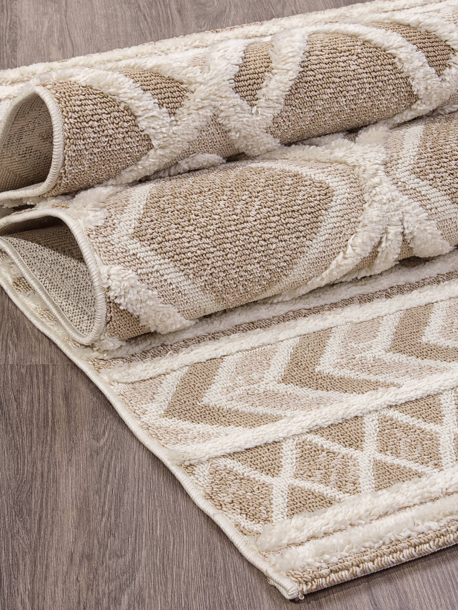 Кремово-бежевая расцветка, геометрический орнамент и высокое качество изготовления позволяют этому ковровому изделию стать стильным дополнением к любому современному интерьеру.
