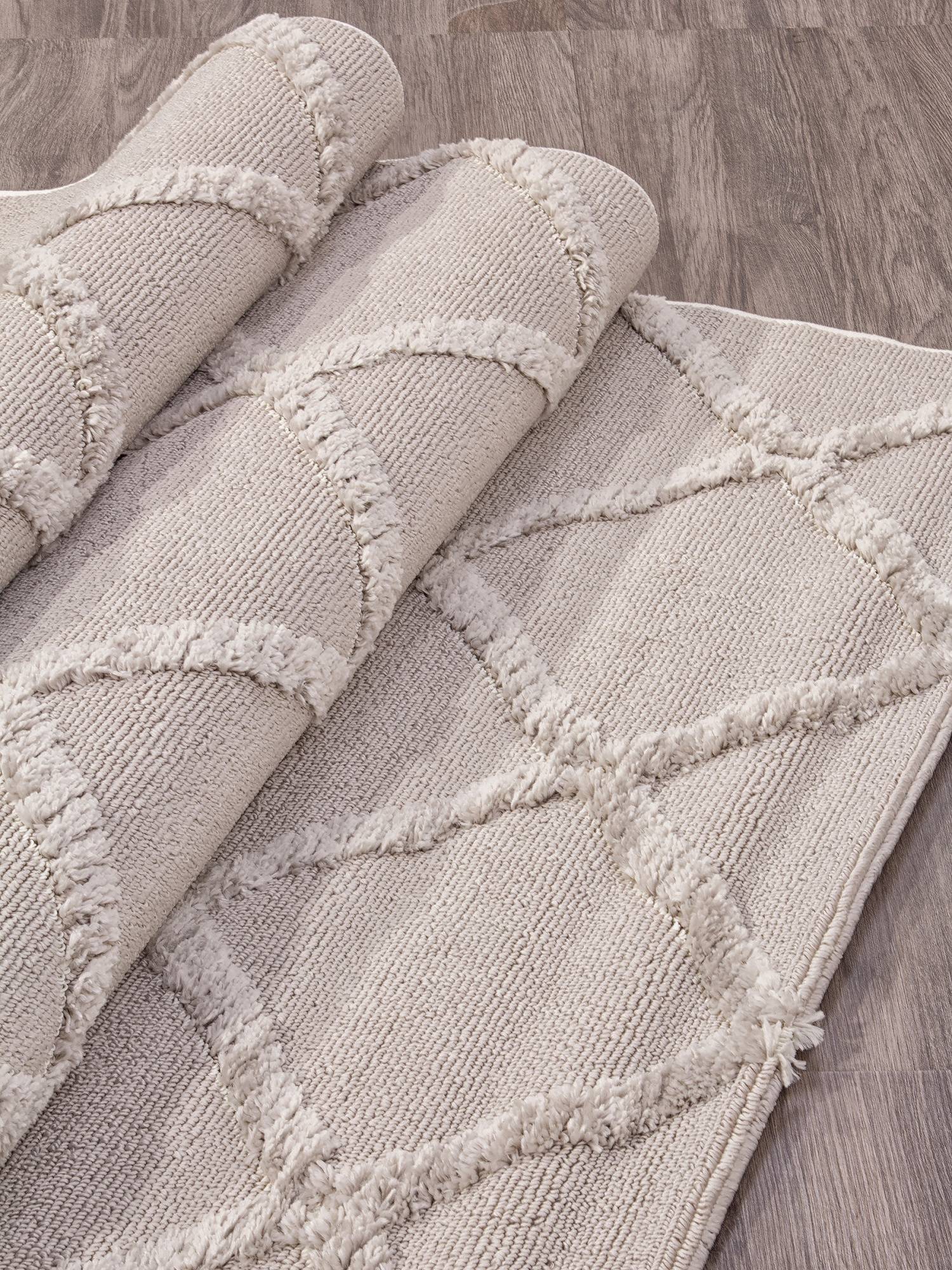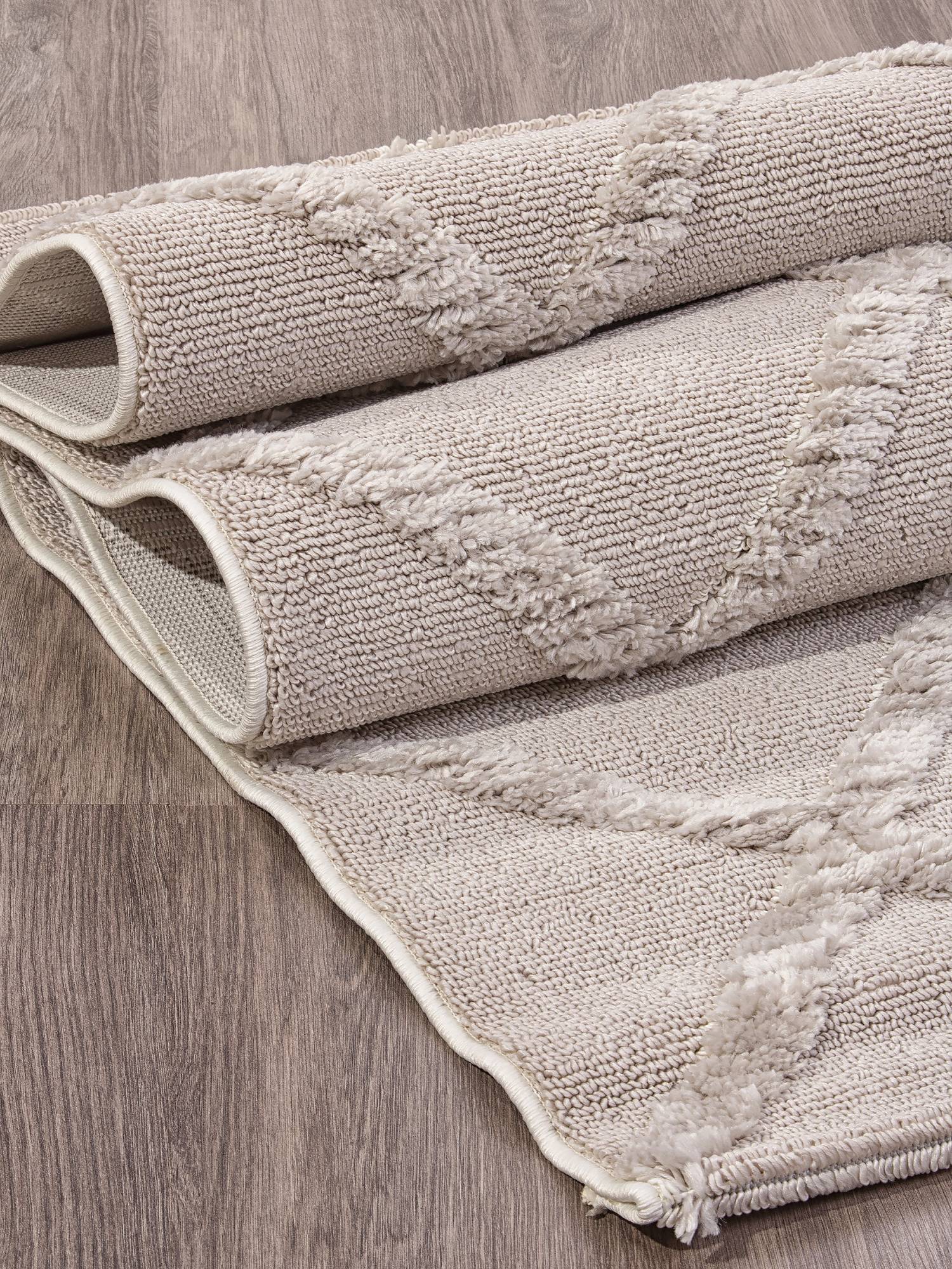 Рельефный геометрический орнамент, однотонная расцветка в серых тонах, приятный гладкий ворс и прост...