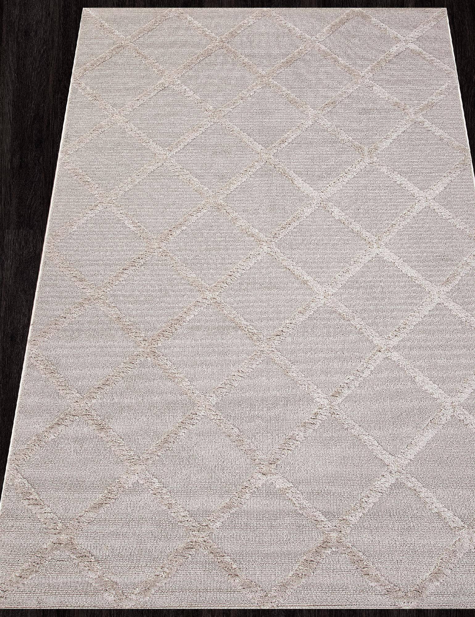 Рельефный геометрический орнамент, однотонная расцветка в серых тонах, приятный гладкий ворс и простая чистка позволяют этому ковру с легкостью дополнить интерьер гостиной или зала.