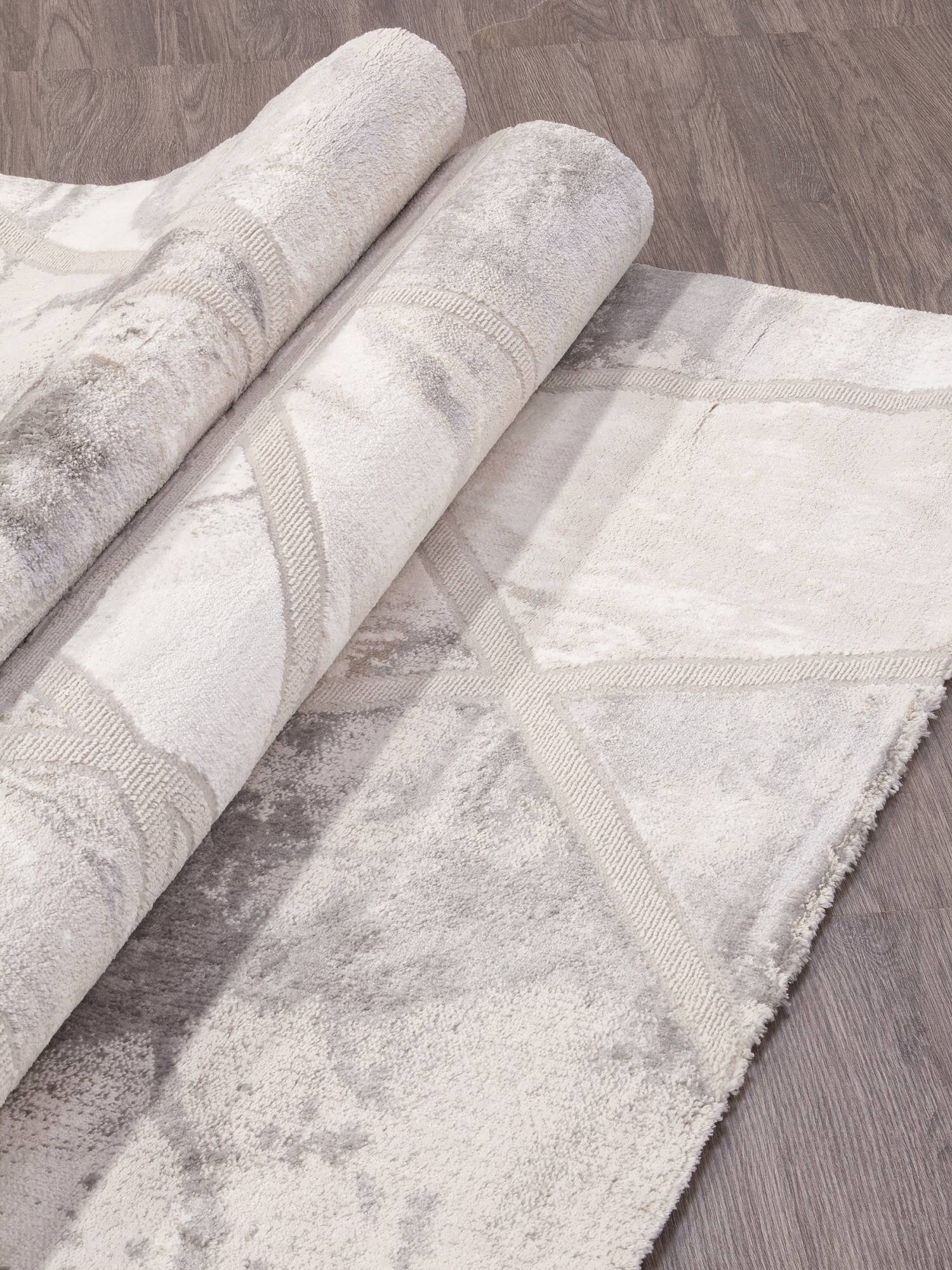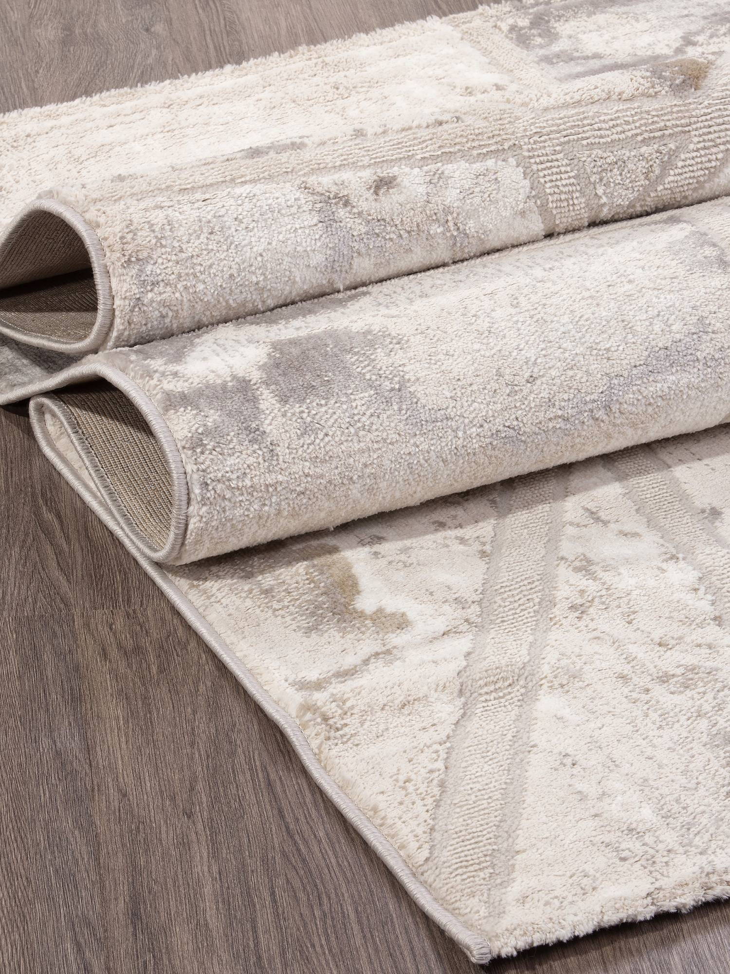 Интересный, современный ковер с абстрактным рисунком в светлой расцветке. Такое ковровое изделие будет хорошим украшением для интерьера гостиной, зала или столовой.