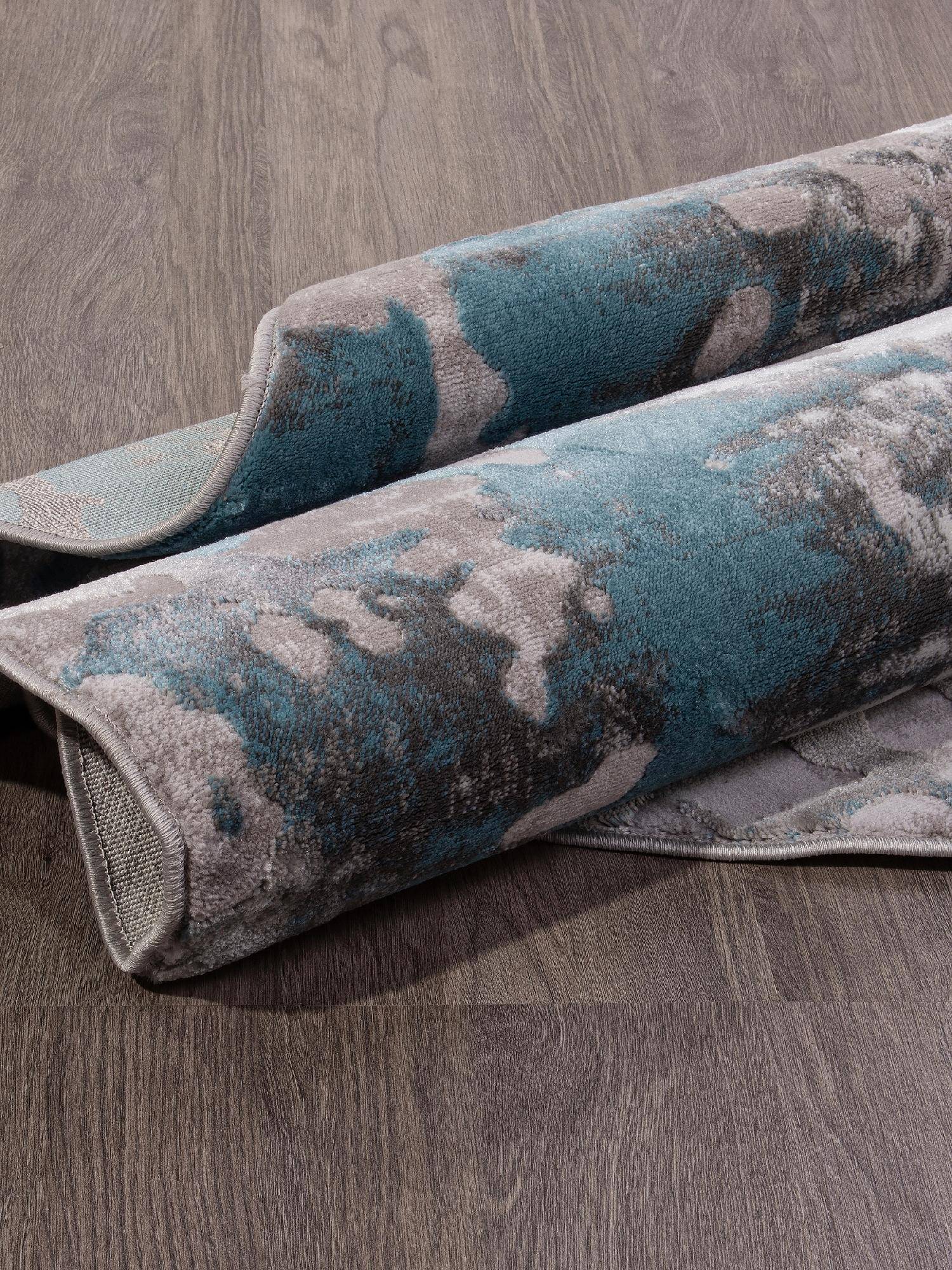 Стильный, круглый ковер с абстрактным орнаментом в серо-синей расцветке. Если вы хотите украсить интерьер своего дома, то обратите сове внимание на это ковровое изделие.