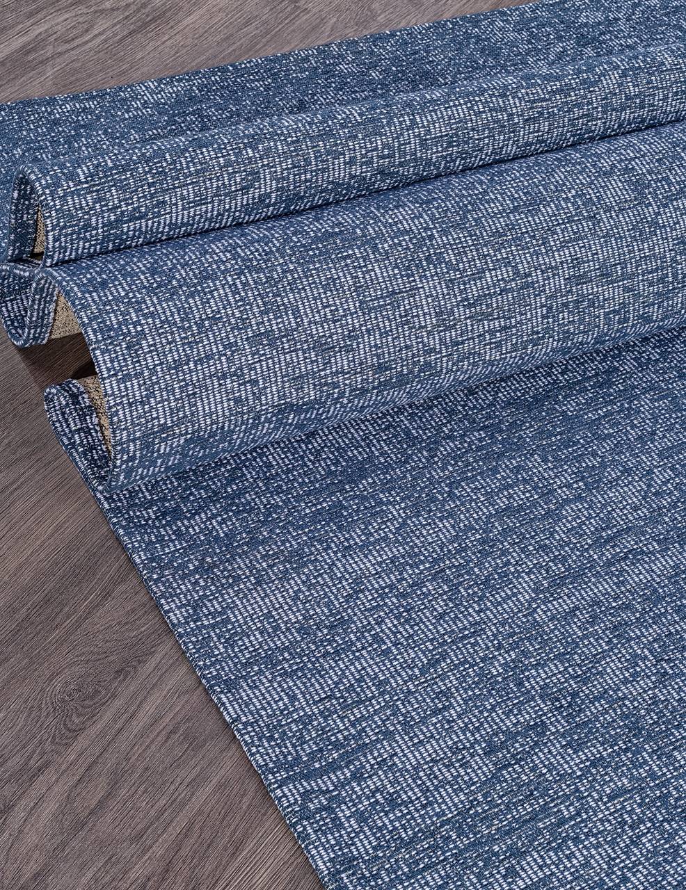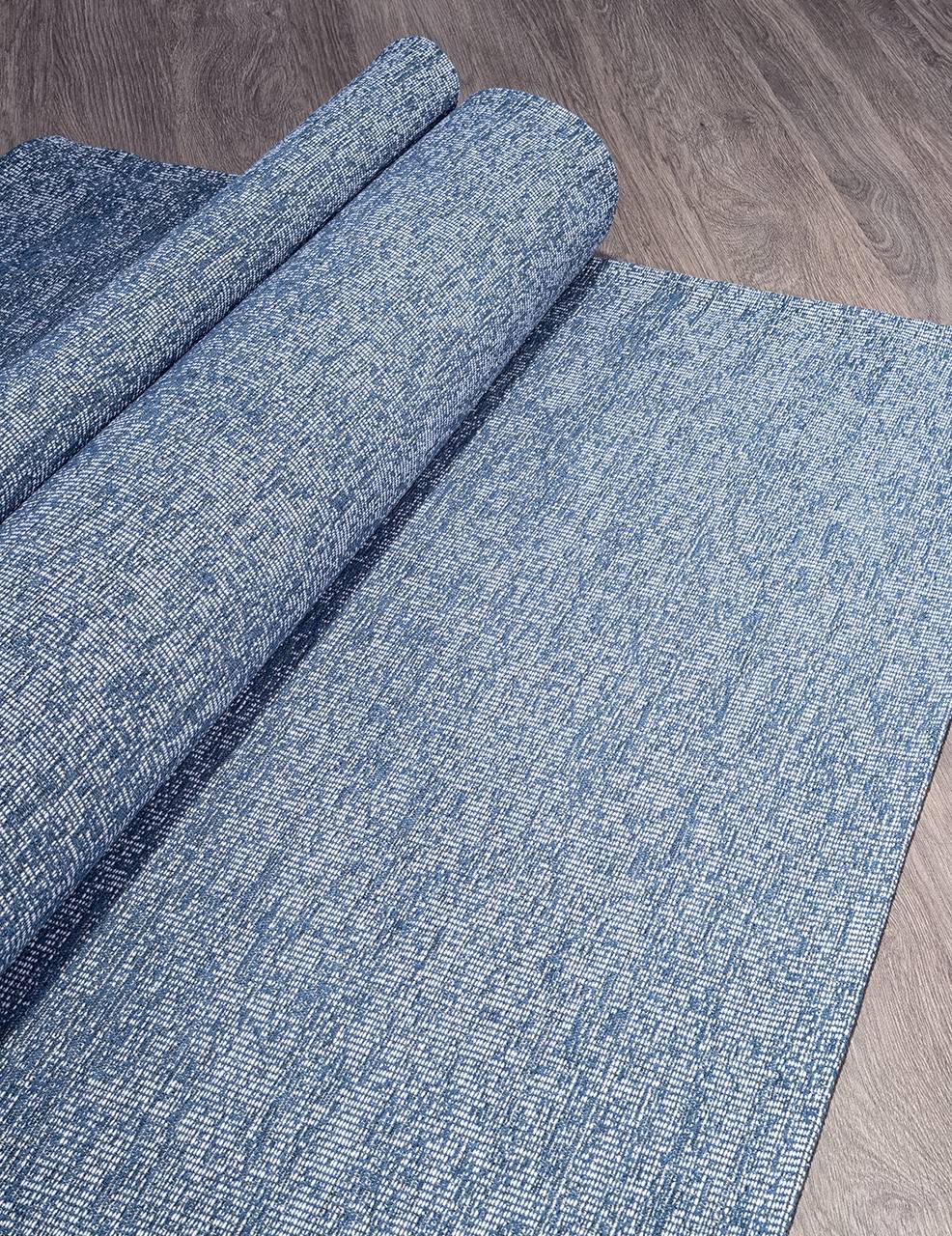 Качественный ковер циновка в синей расцветке, такое ковровое изделие сможет обеспечить хорошую защиту для вашего пола от повреждений его ножками от мебели.
