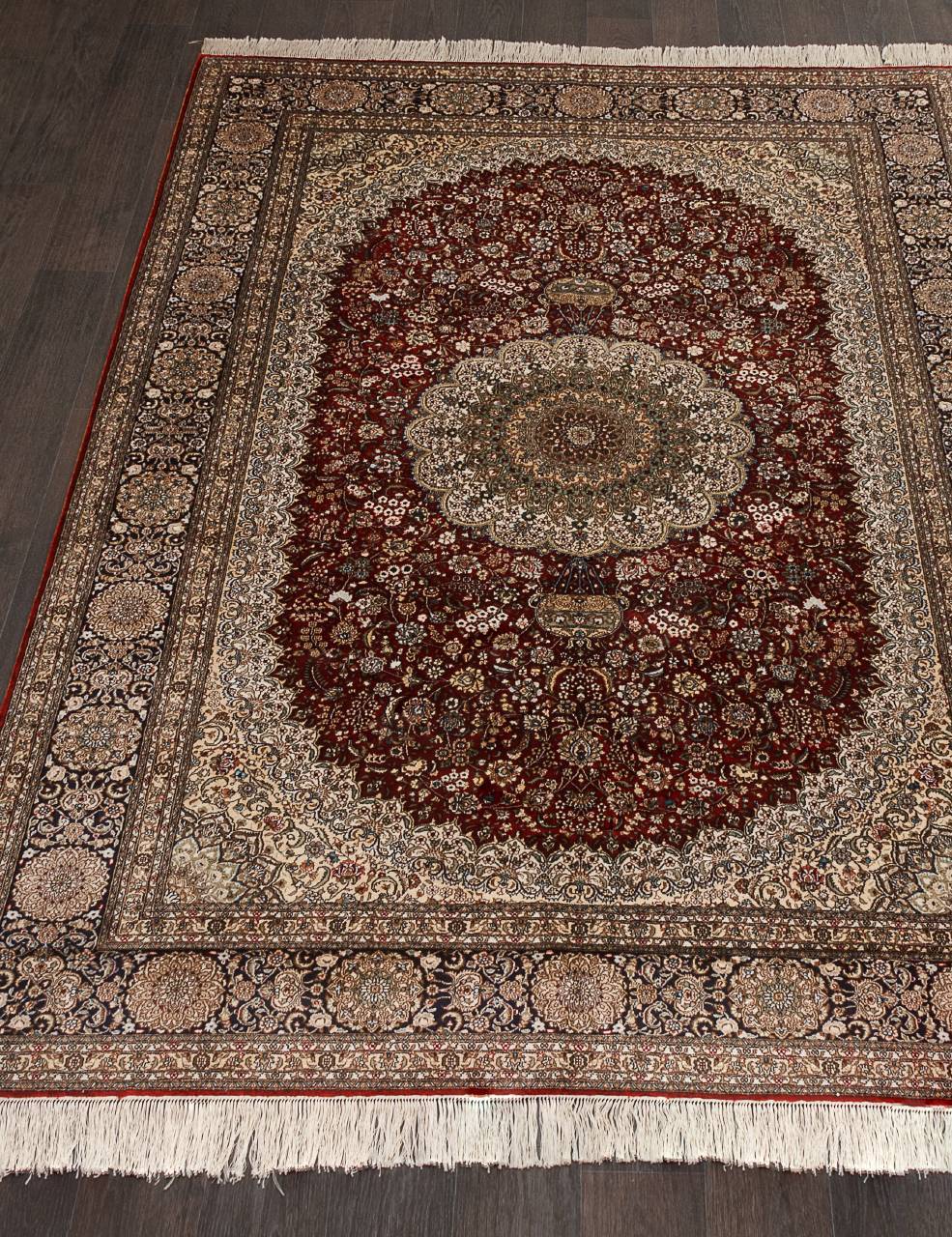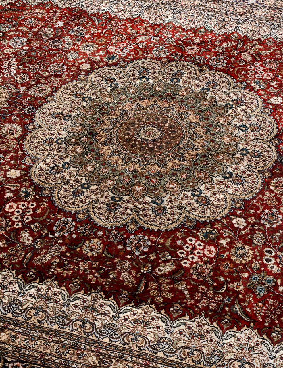 Ручное изготовление, мелкий, детализированный орнамент, а также оригинальная цветовая палитра состоящая из мягкого кремового и насыщеного красного цвета позволяют этому ковру стать примечательной деталью любого интерьера.