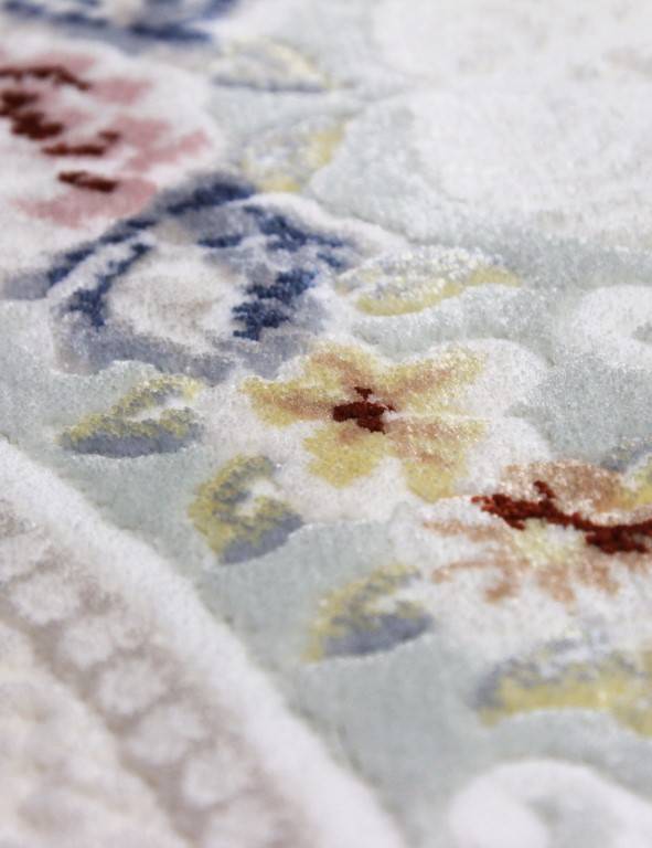 Светлый акриловый ковер с рельефным орнаментом и цветочными элементами. Такой ковер сможет украсить ...