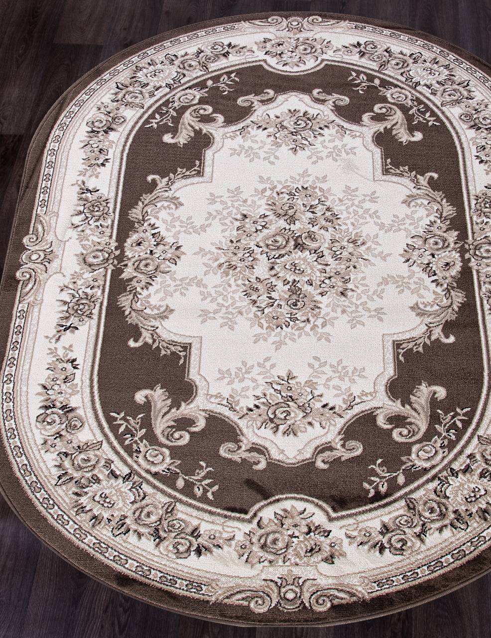 Стильный овальный ковер в классическом дизайне, бежево-коричневая расцветка и цветочный рисунок позволяют этому ковровому изделию стать интересным дополнением для интерьера вашего дома.