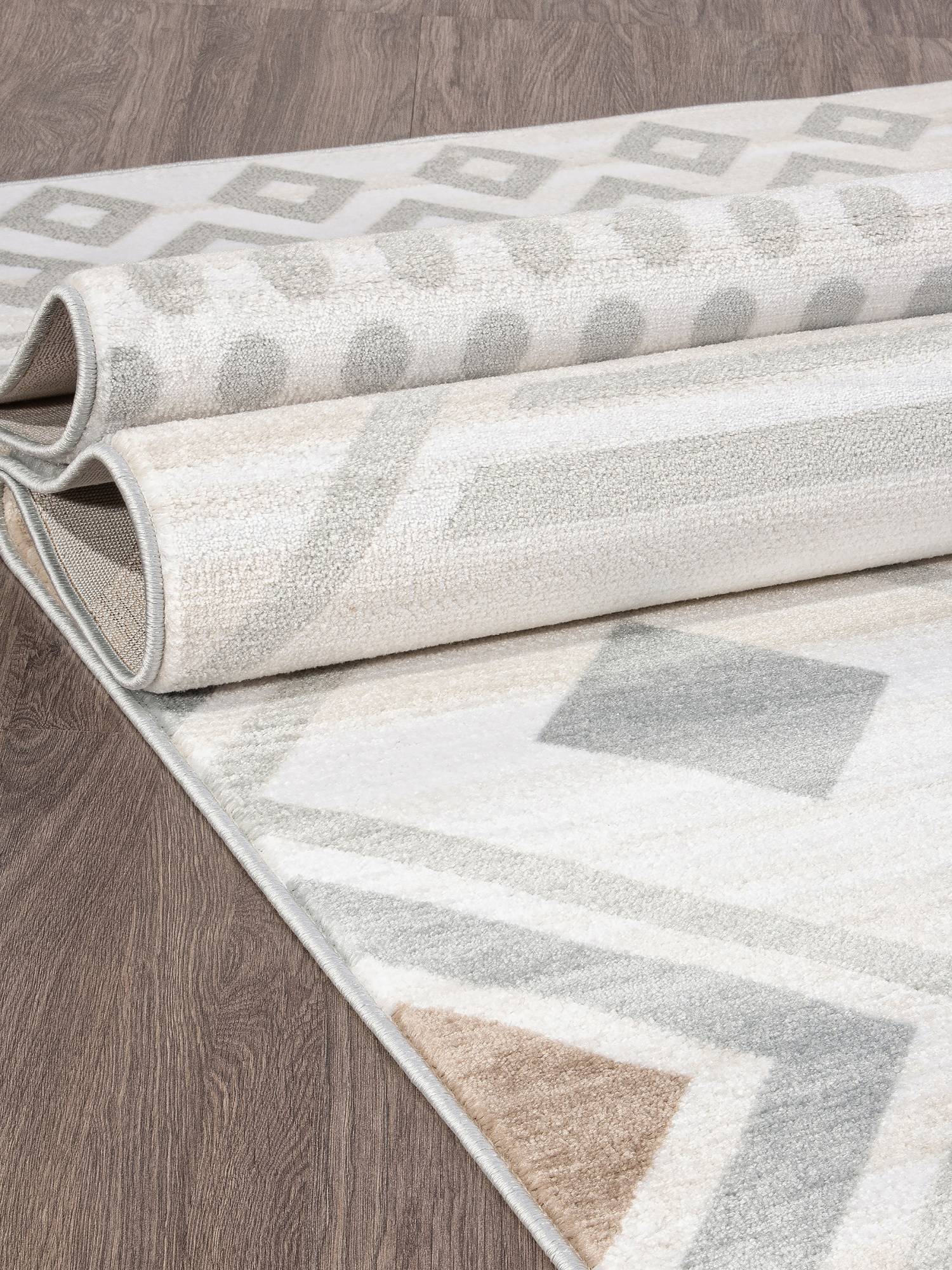 Стильный светлый ковер с рисунком из геометрических элементов. Если вы ищите ковер для гостиной или ...