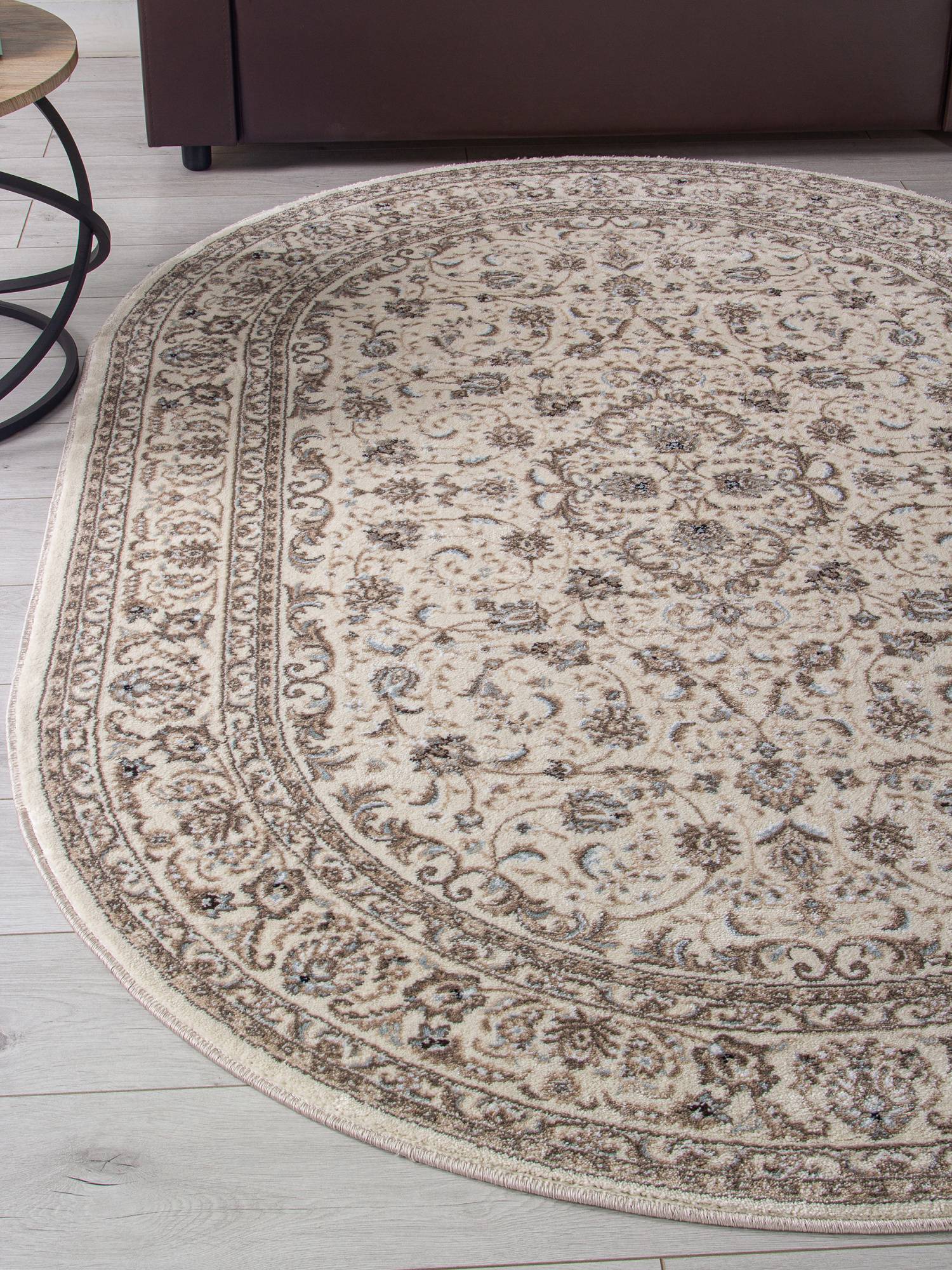Светлый овальный ковер в классическом дизайне станет отличным дополнением к интерьеру вашего дома.