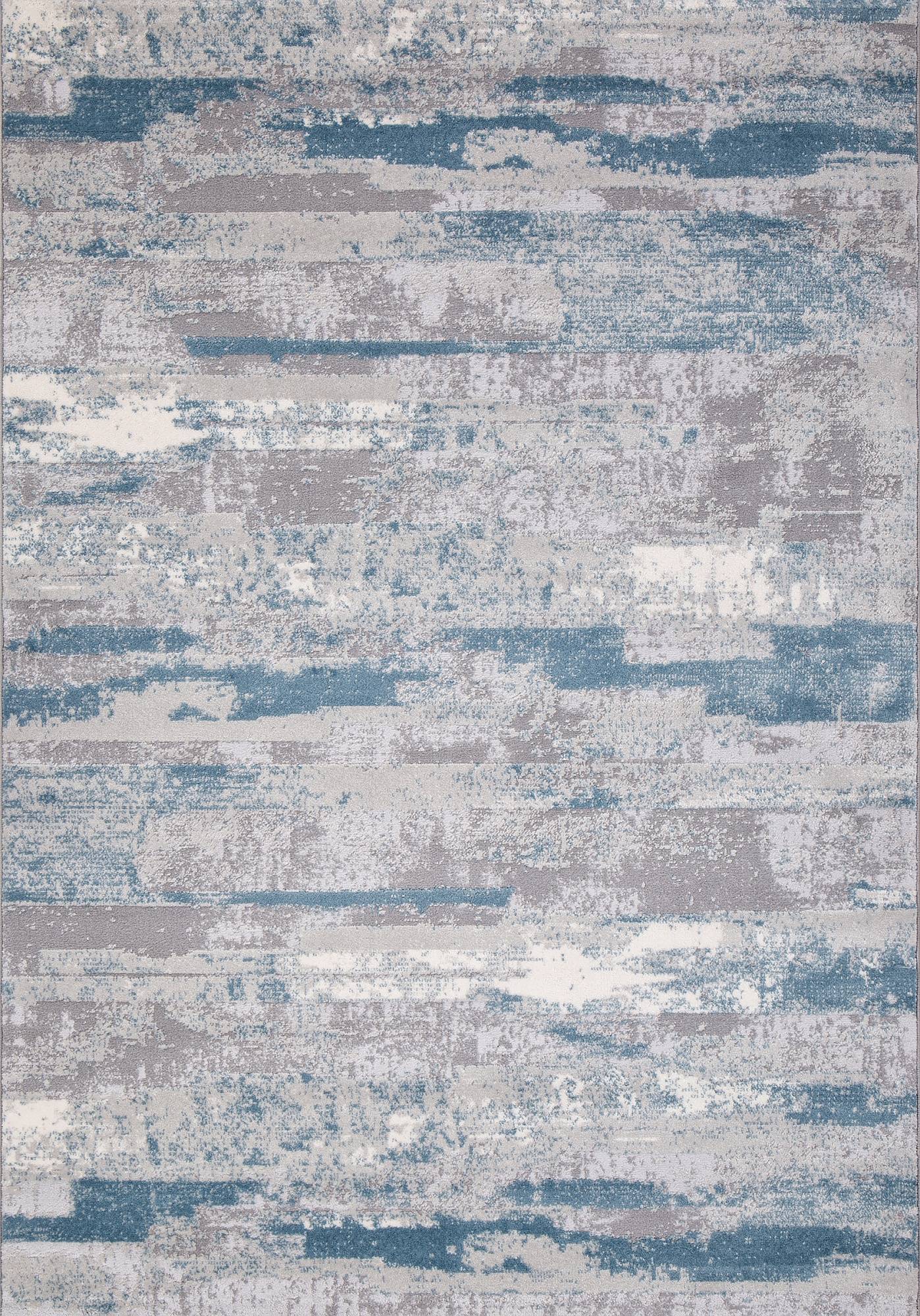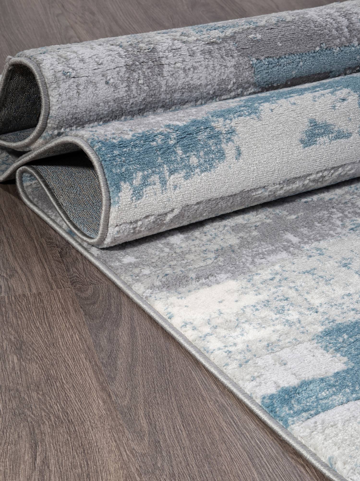 Абстрактный рисунок в нейтральной серо-синей расцветке позволяют этому ковру украсить практически любой современный интерьер.