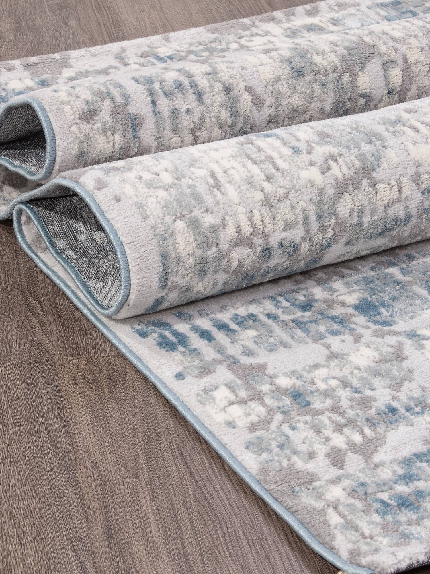 Цветовая палитра в серых и синих тонах, абстрактный рисунок и высокое качество изготовления позволяю...