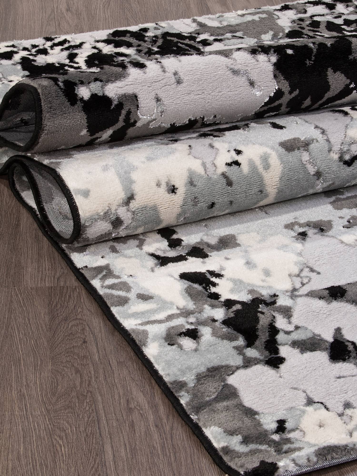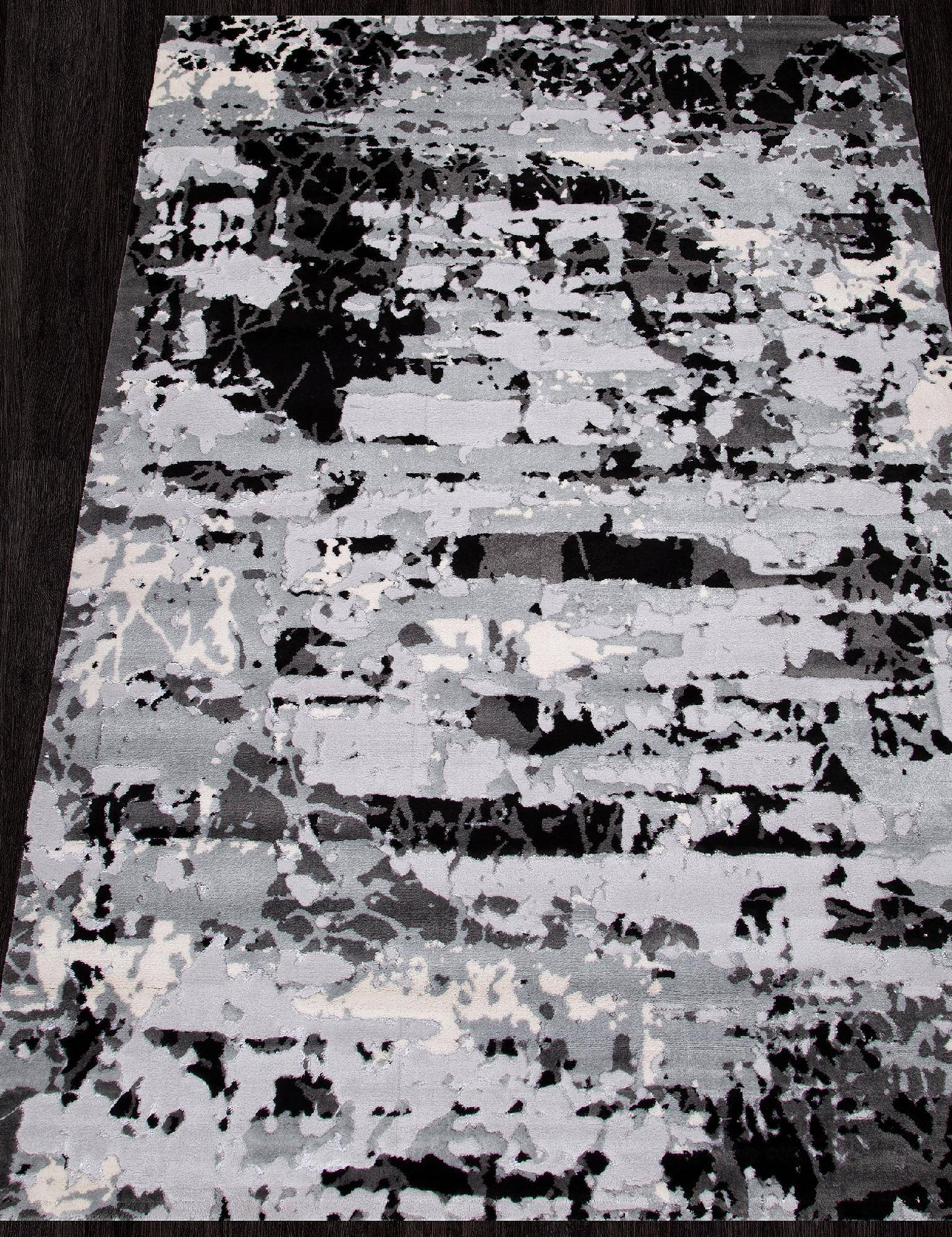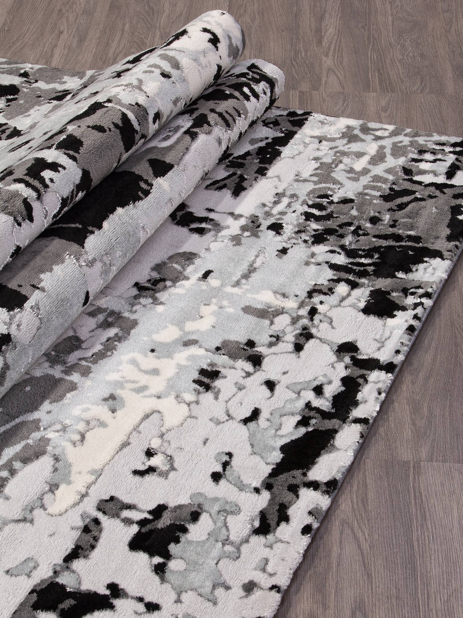 Серо-черный современный ковер с абстрактным рисунком станет стильным украшением для интерьера вашего дома.