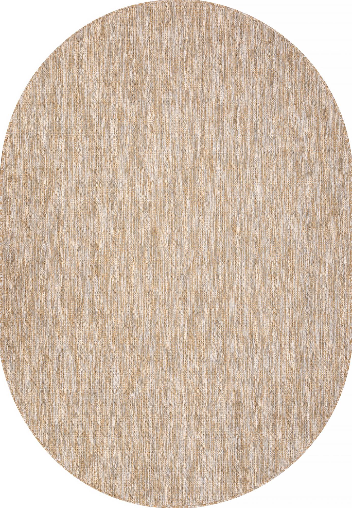 Стильный, бежевый, овальный ковер из синтетики. имеет высокое качество изготовления и хорошую износостойкость. Лучший выбор для украшения гостиной или зала.