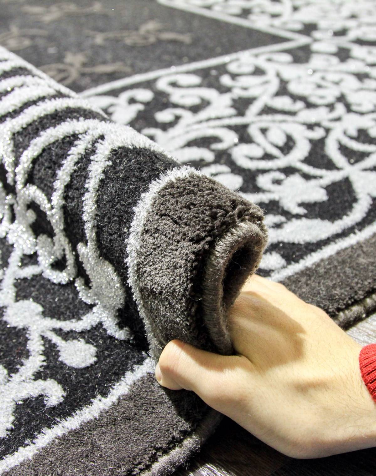 Оригинальный стиль и строгие темные тона этого ковра подойдут под почти любой современный интерьер. Такое ковровое изделие отлично будет смотреться в гостиной или зале.