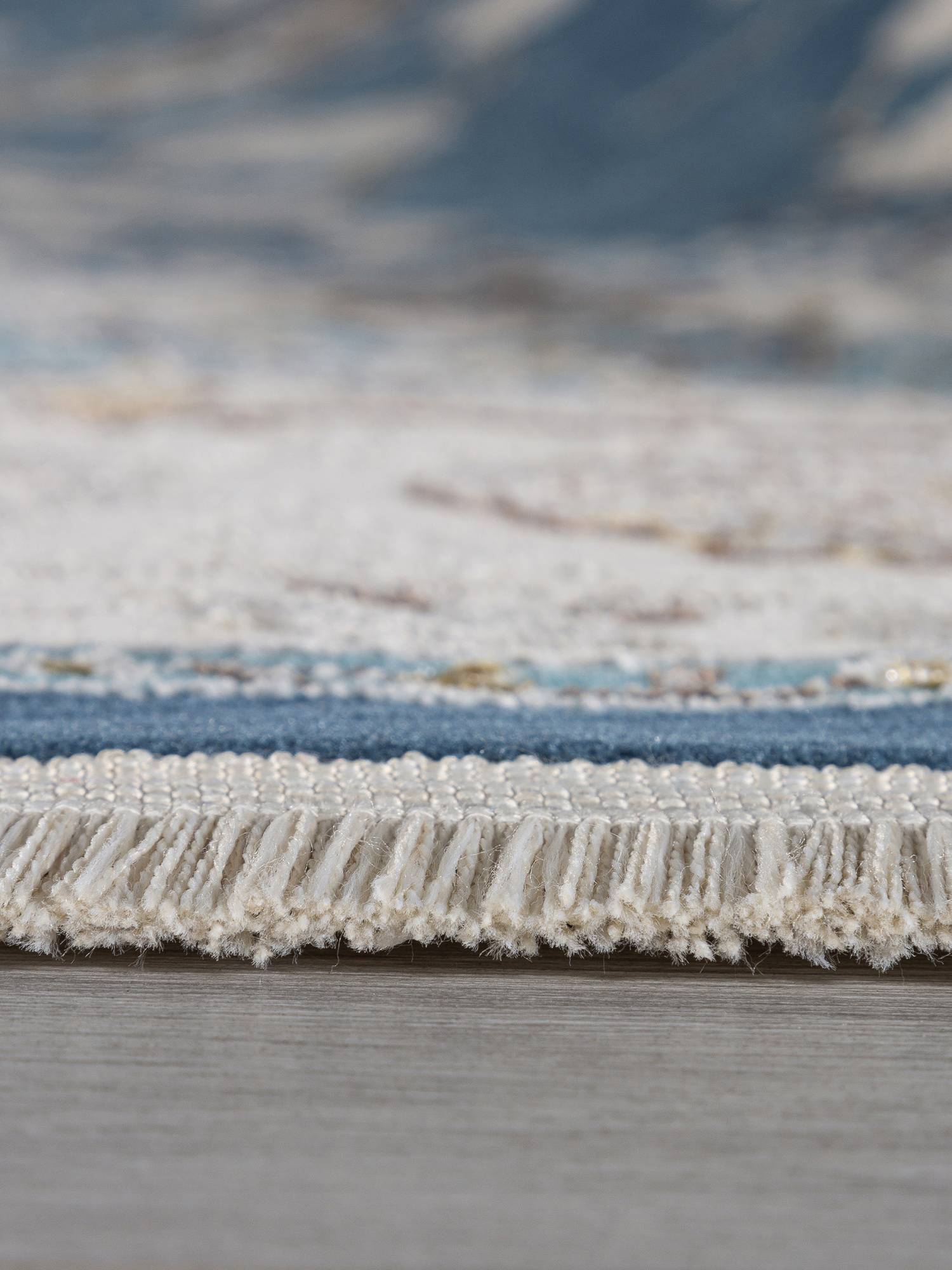Сине-кремовая расцветка, качественные материалы изготовления и оригинальный дизайн позволяют этому ковру стать стильным дополнением для интерьера вашего дома.