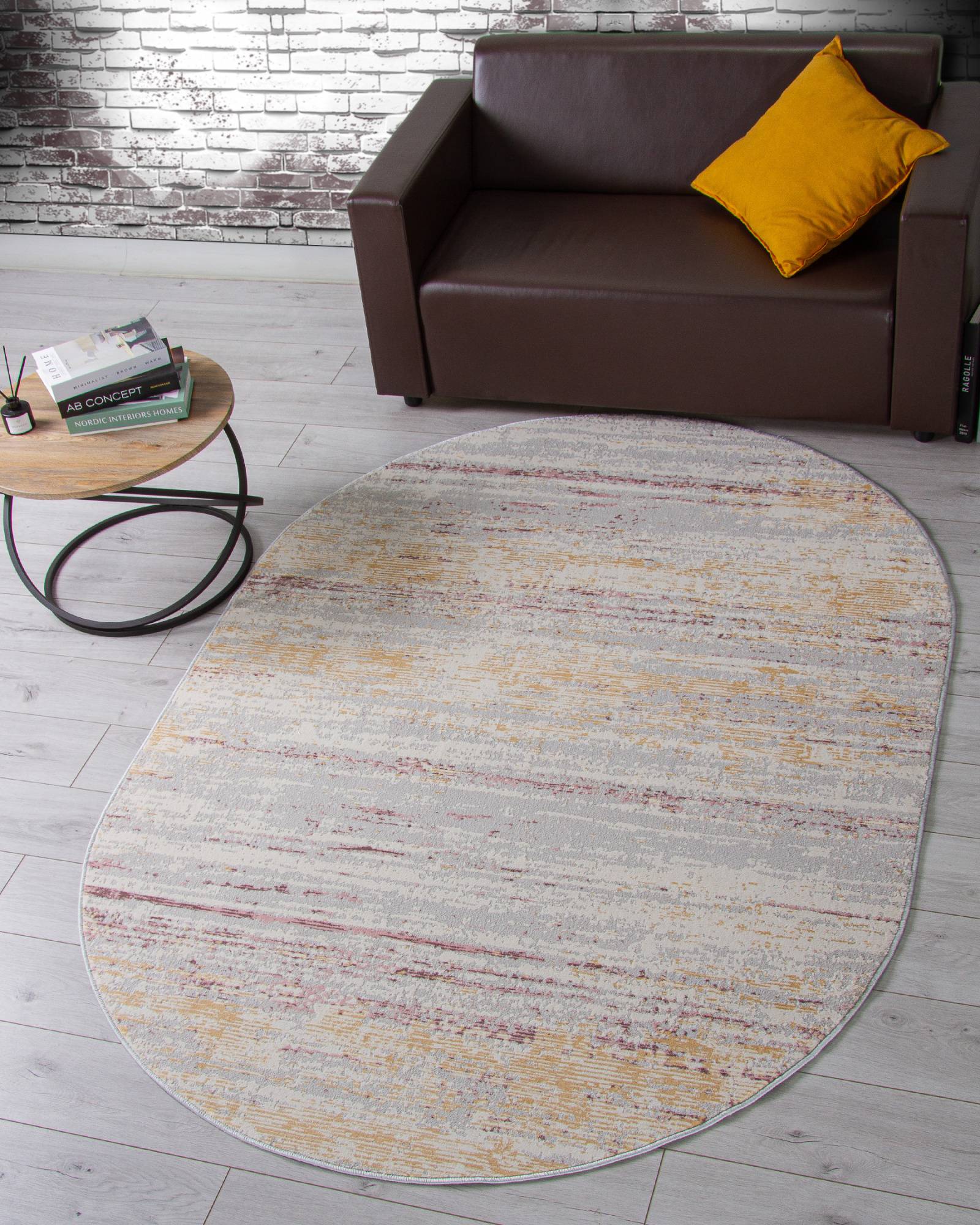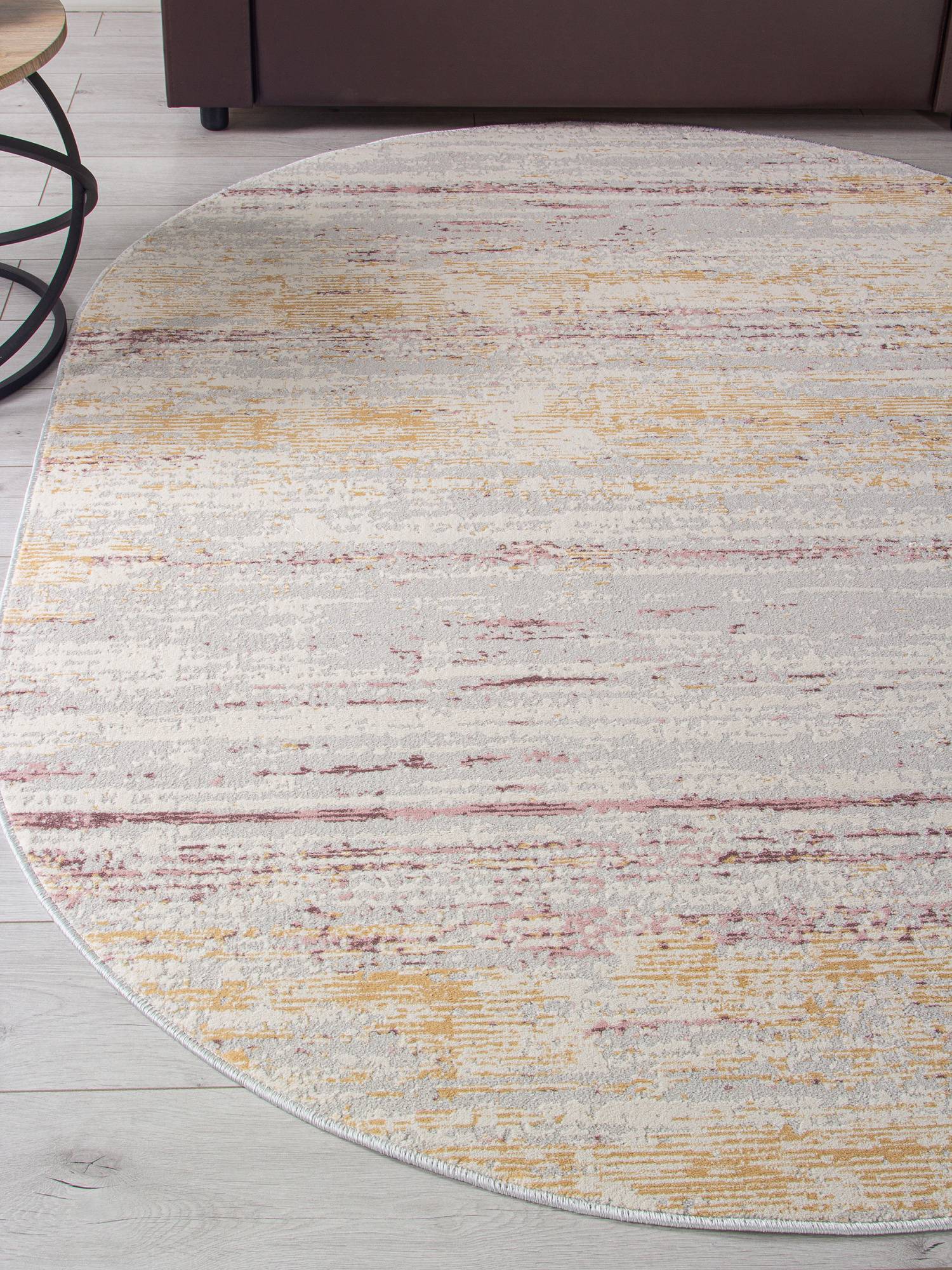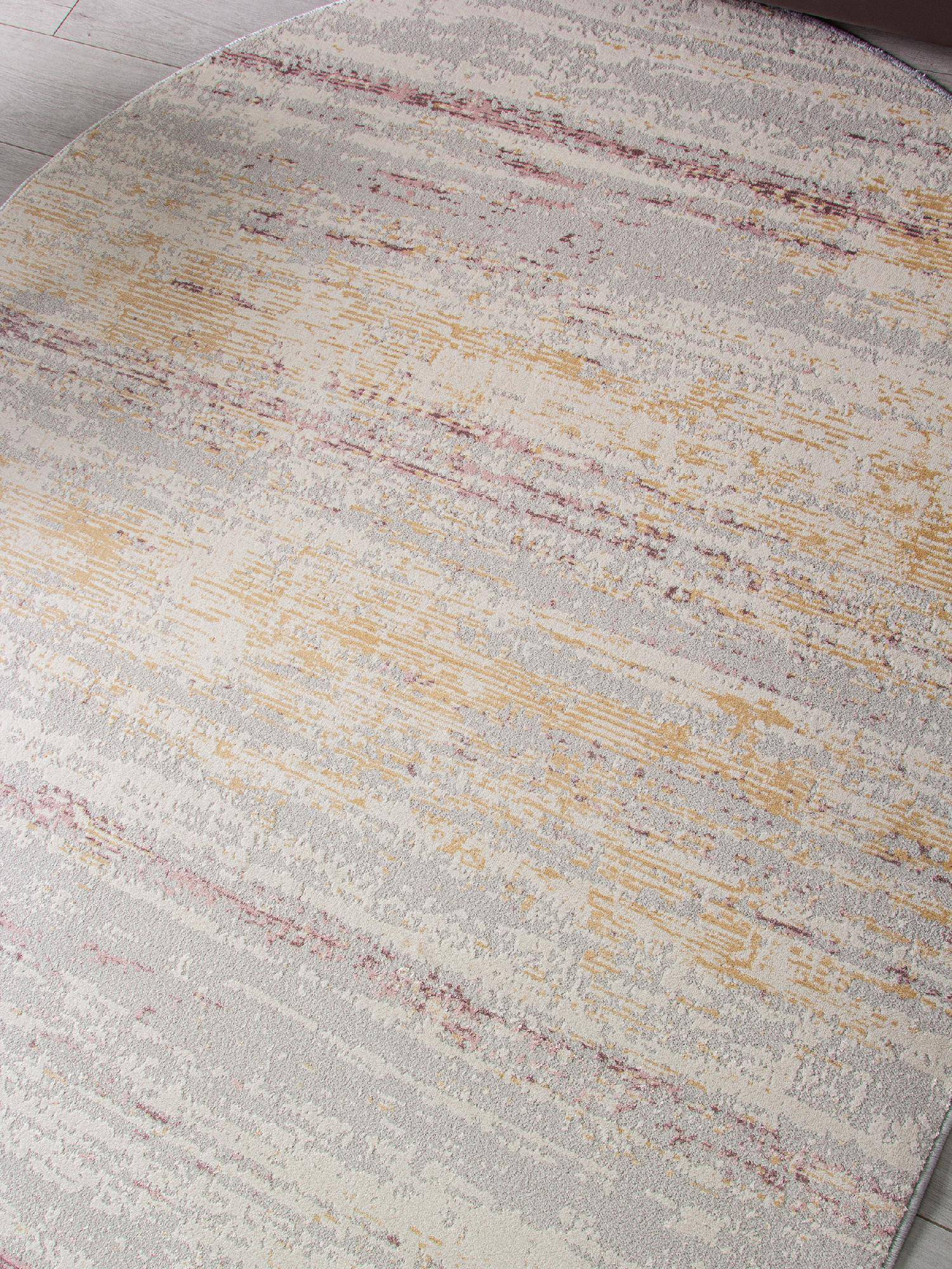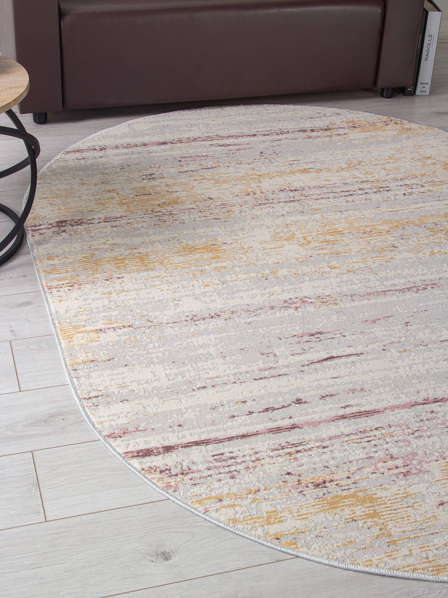 Светлый ковер в серых и розовых тонах с абстрактным рисунком поможет вам дополнить любой интерьер уютом.